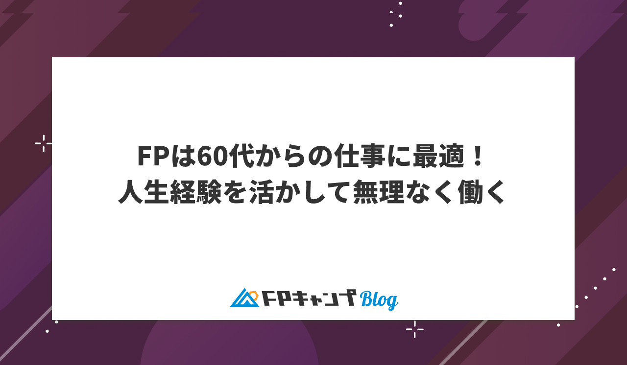 やりがい・収入・プライベートの充実を得られるFPを、60代からの仕事に選んでみてはいかがでしょうか。