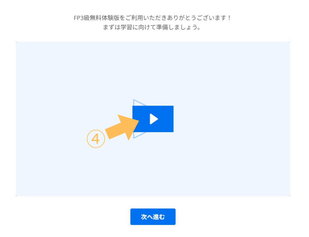パスワードを設定したあと、FPキャンプで勉強をはじめる準備として④の「準備動画」を視聴しましょう。