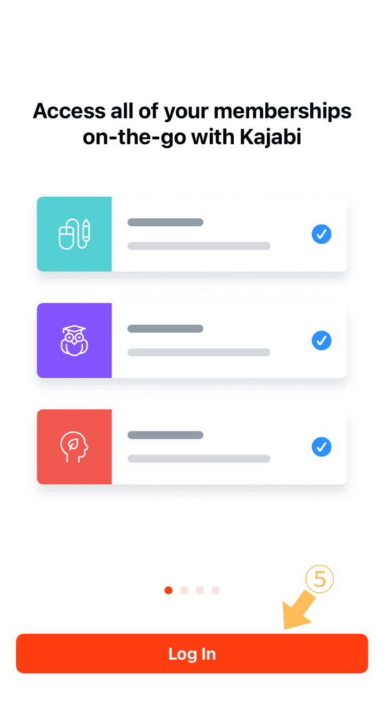 「Kajabi」を開き、「⑤Log In」をクリックしましょう。