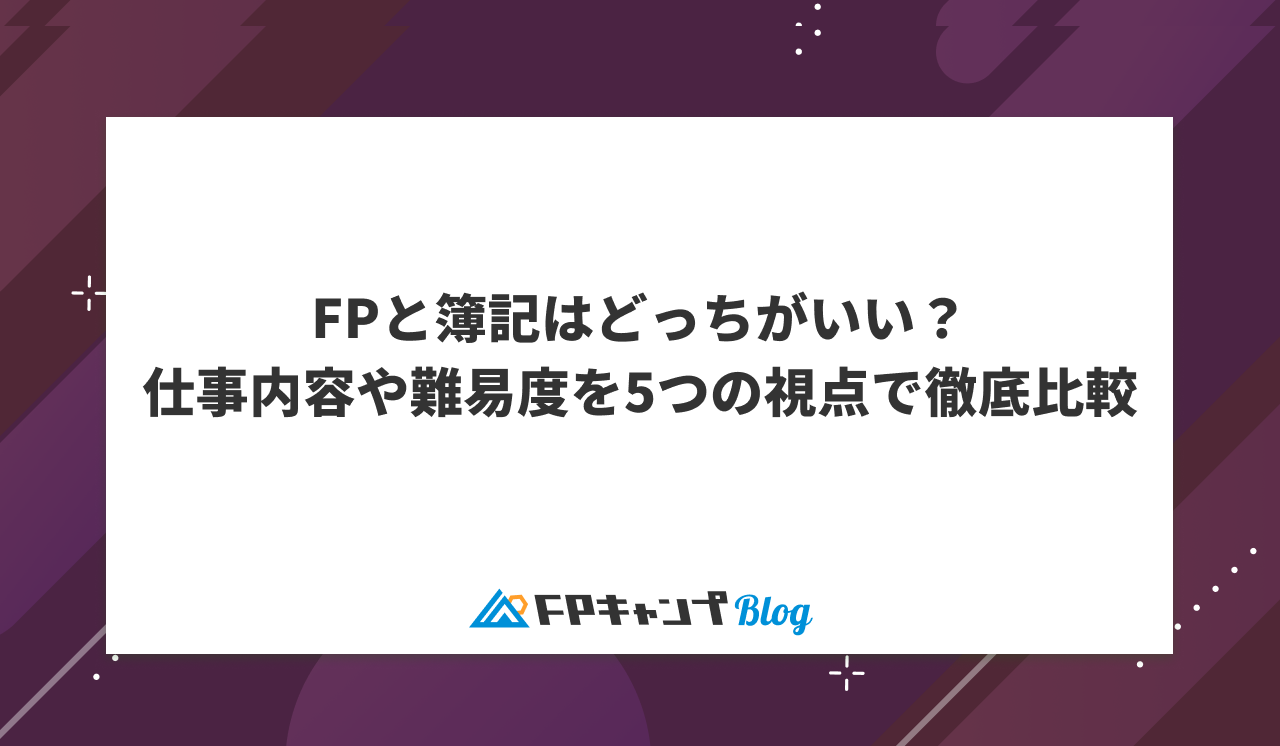 本記事では、FPと簿記の違いを5つの視点で徹底的に比較し、おすすめな人の特徴も解説するので、ぜひ最後までご覧ください。