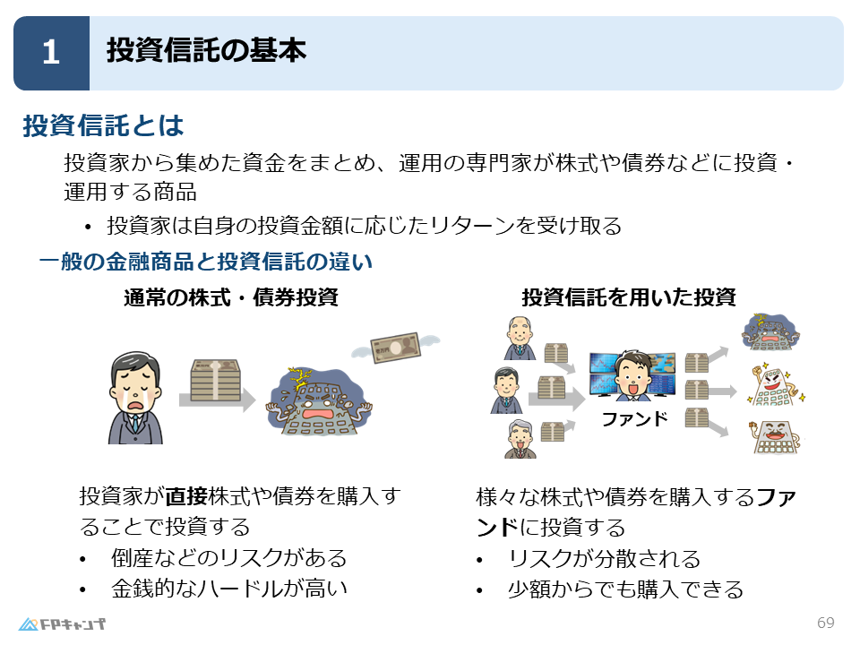 では、これまで学んできた株式や債券への直接投資と、投資信託は何が違うのでしょうか。