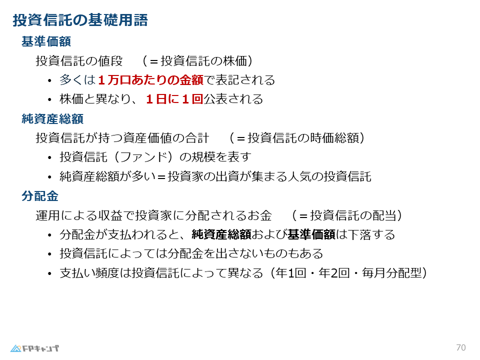 ここからは、投資信託を学ぶ上で絶対に欠かせない3つの基礎用語について解説します。