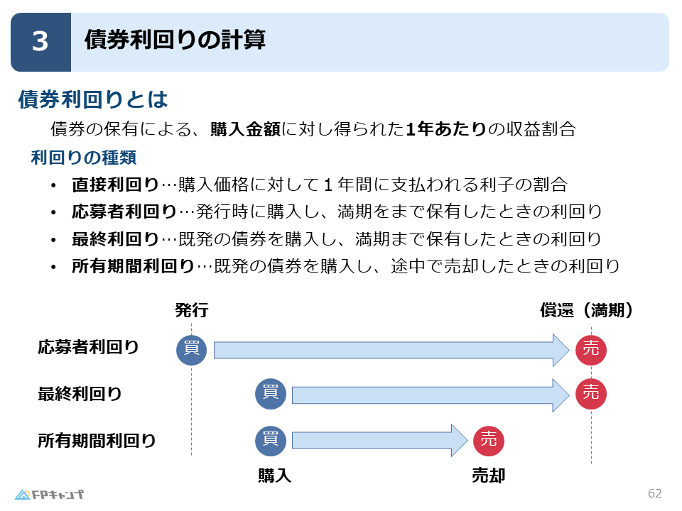なぜなら、これらの利回りの違いは、単に「いつ債券を手に入れて、いつ手放すか」が違うだけだからです。本質的な計算の考え方は、すべて同じなのです。