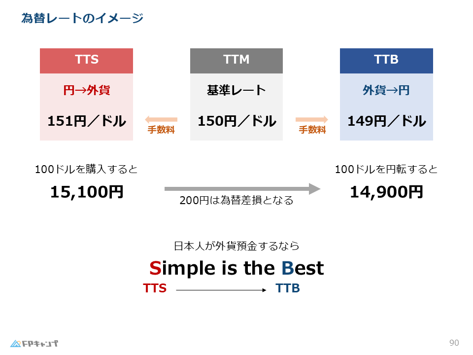 この「S(TTS)imple is the B(TTB)est」というフレーズが、外貨預金の取引の流れそのものを表しています。