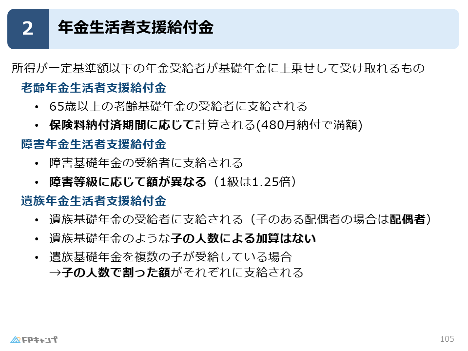 それぞれの支援給付金はどの種類の年金に上乗せされるかで名称が異なりますが、制度や性質はほとんど変わりません。