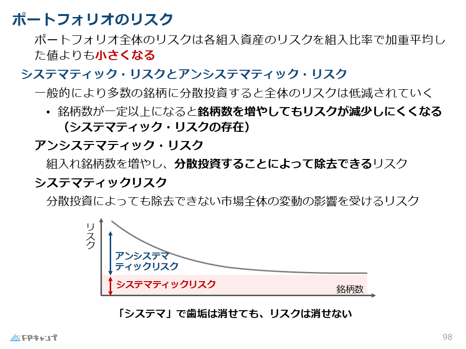 3. 銘柄を増やしても消せないリスクは「システマティックリスク」。
