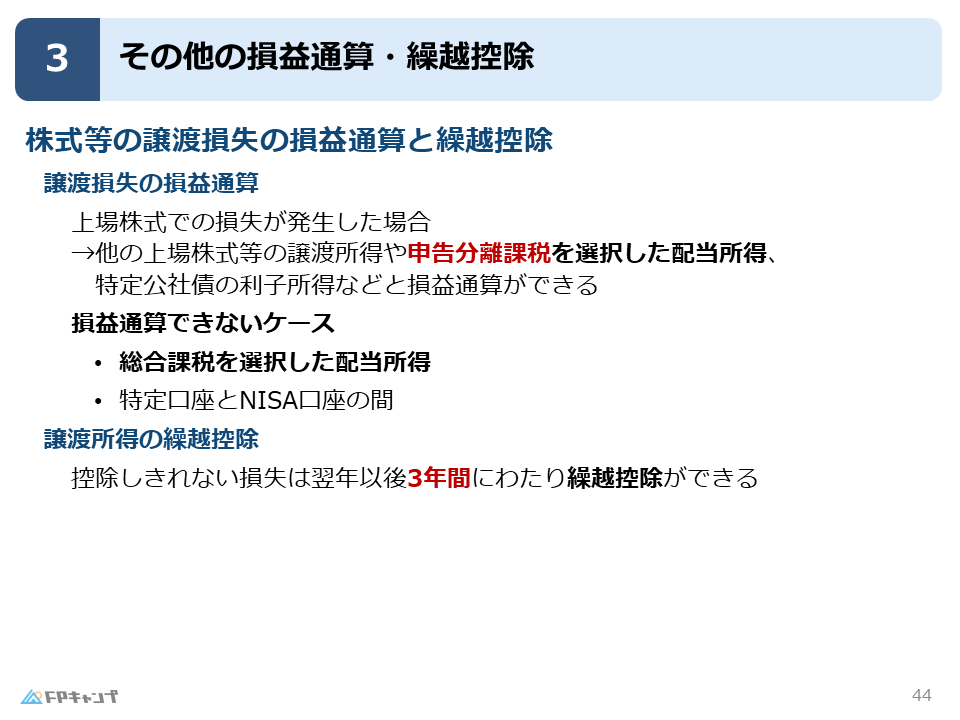 「株式等は何と損益通算することができるのか」「どのようなケースで損益通算ができないのか」といった点が試験対策として非常に重要になってきます。