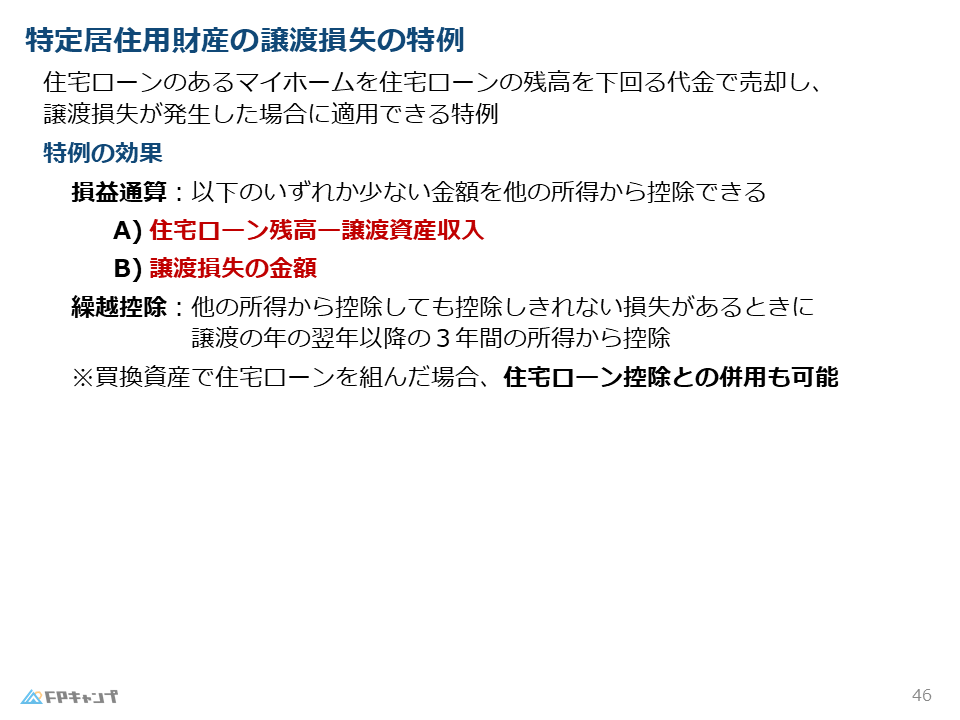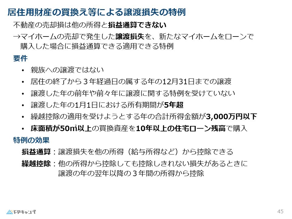 次に、マイホーム(居住用財産)を売却したときに損失が出た場合の特例についてです。