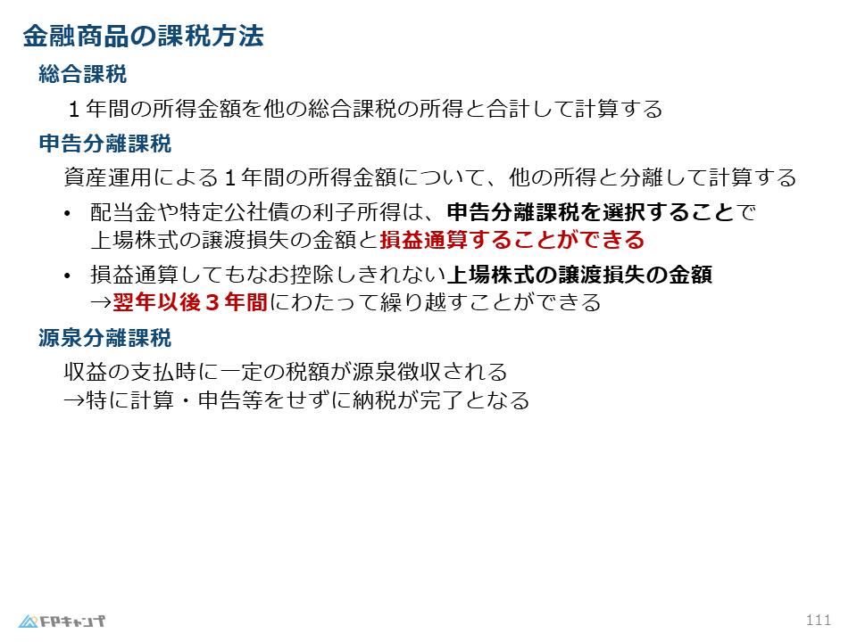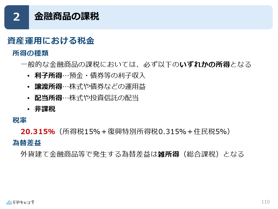 金融商品の説明が一通り終わりましたので、ここからは税務の話に入ります。
