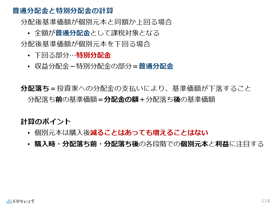 FP2級の試験では、普通分配金と特別分配金の額を求める計算問題がよく出題されます。