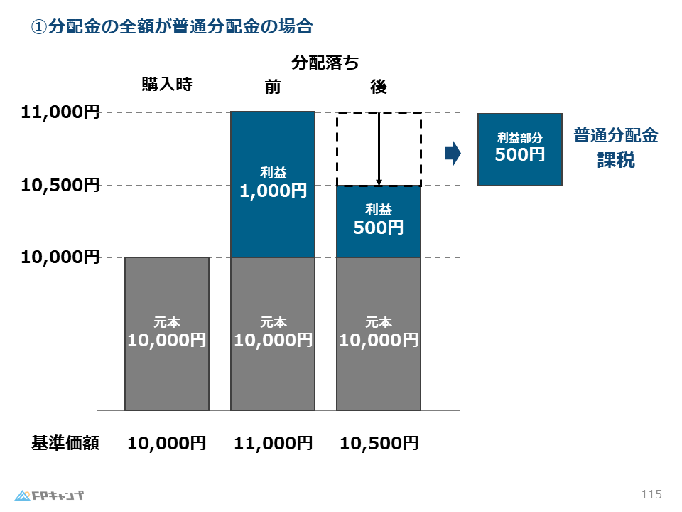 | 分配落ち後の基準価額 ≧ 個別元本 | 全額が普通分配金(課税) |
