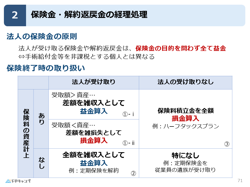 - 法人が保険料(支払ったお金)を資産計上したかしていないかの2通り