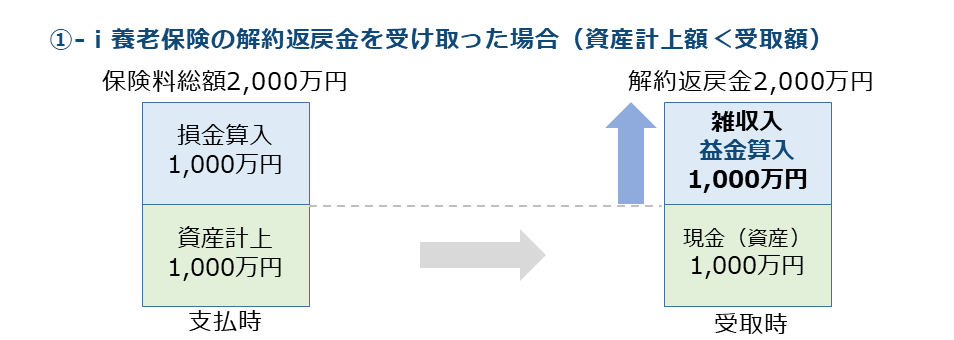 i )資産計上した分より多く保険金を受け取った場合より資産を得たので差額分を収入として処理され、