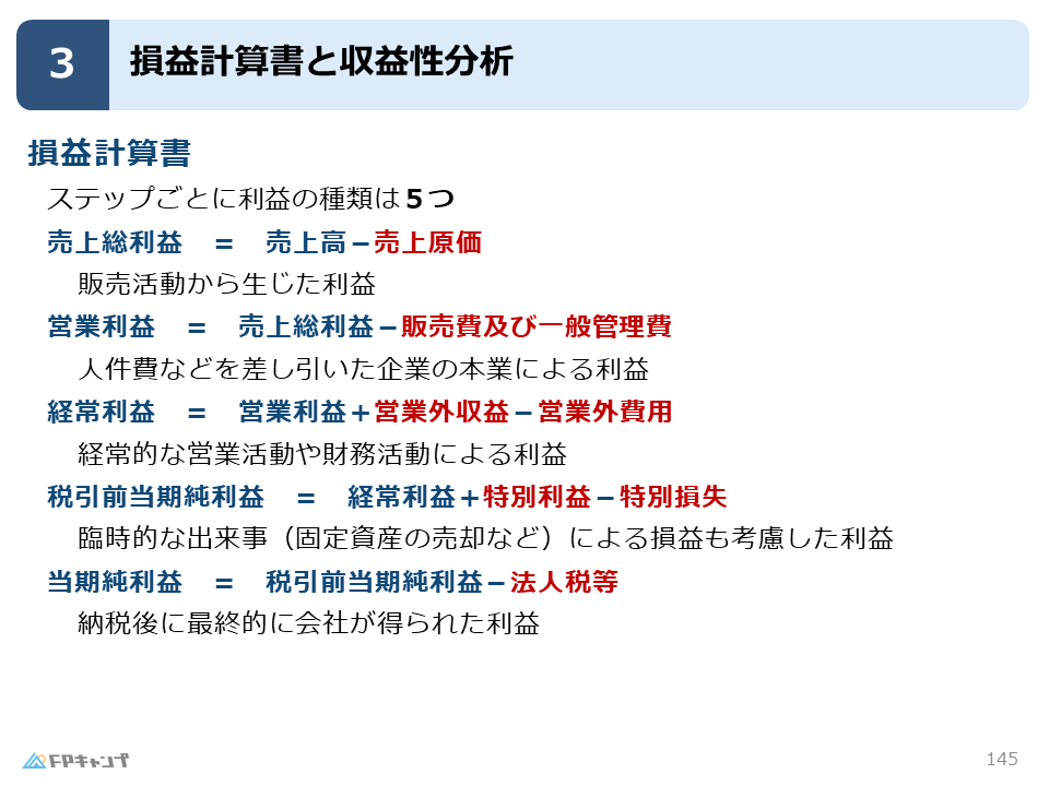FP2級の学習を進めると、損益計算書でたくさんの「利益」が出てきて苦しくなりがちです。