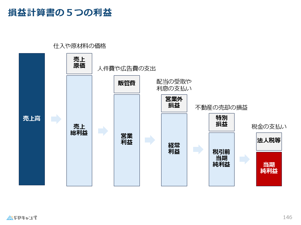 損益計算書には、大きく分けて5つの利益が登場します。