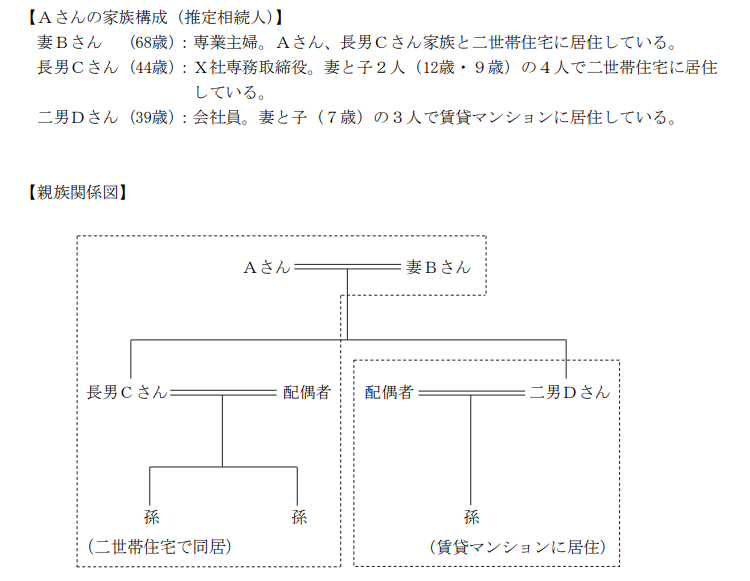 創業社長Aさんによる非上場企業の事業承継と、家族間における資産承継のバランス調整をテーマとした設例です。