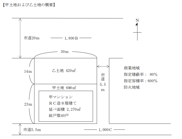 敷地面積690㎡、延床面積2,270㎡、1972年築(築後約53年)、鉄筋コンクリート造8階建て、総戸数40戸、40㎡から60㎡(1LDK、2LDK主体)の分譲マンション。甲マンションに居住している区分所有者は2人だけで、他の所有者は賃貸物件として運用しているか自用の事務所として利用している。