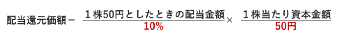1株50円としたときの配当金額:毎期5円/株(=50円×2万株÷20万株)