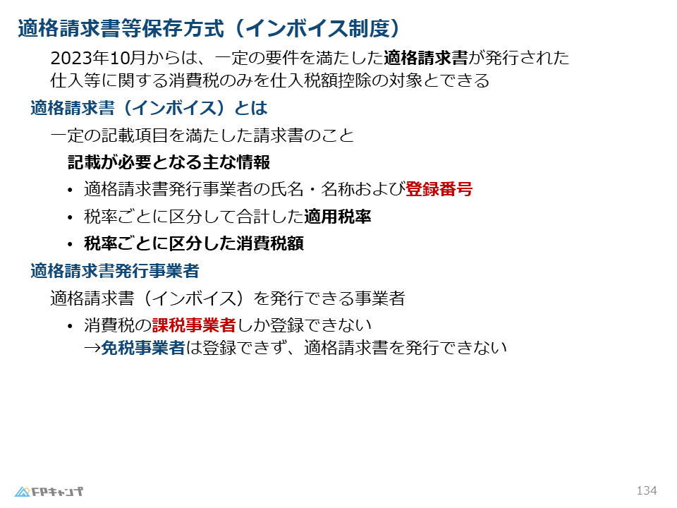 この制度のポイントは、原則課税において支払った消費税を差し引く(仕入税額控除)ためには、国に登録した事業者が発行する適格請求書(インボイス)の保存が必須となった点です。