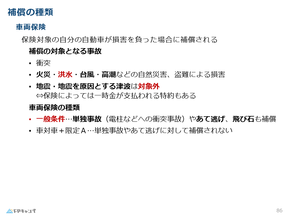「でも、自動車保険っていろいろあって、どれを選べばいいの?」「FPの試験対策で何となく覚えてきたけど、どれが何を補償しているの?」