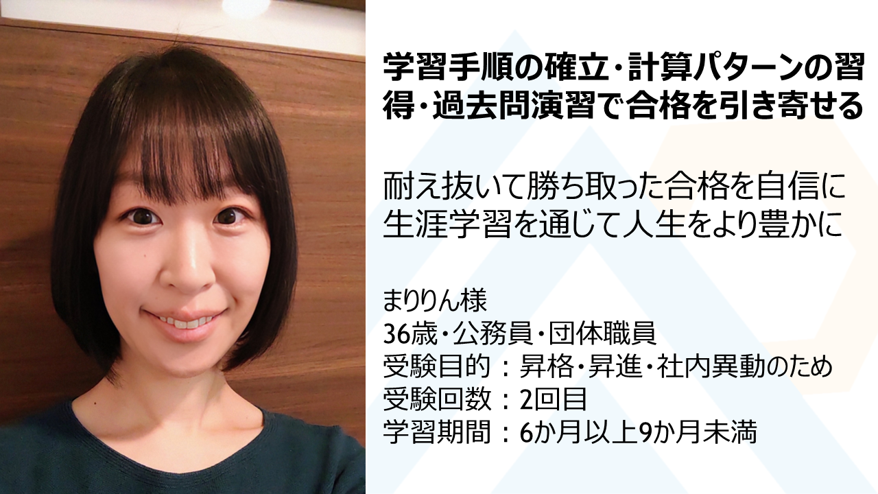 最後まで諦めずに継続することの大切さを、改めて実感することができました。苦しい時期を乗り越えて勝ち取った合格は、大きな自信につながっています。これからも生涯学習をモットーに、知的好奇心を大切にしながら、人生をより豊かにしていきたいと思います。