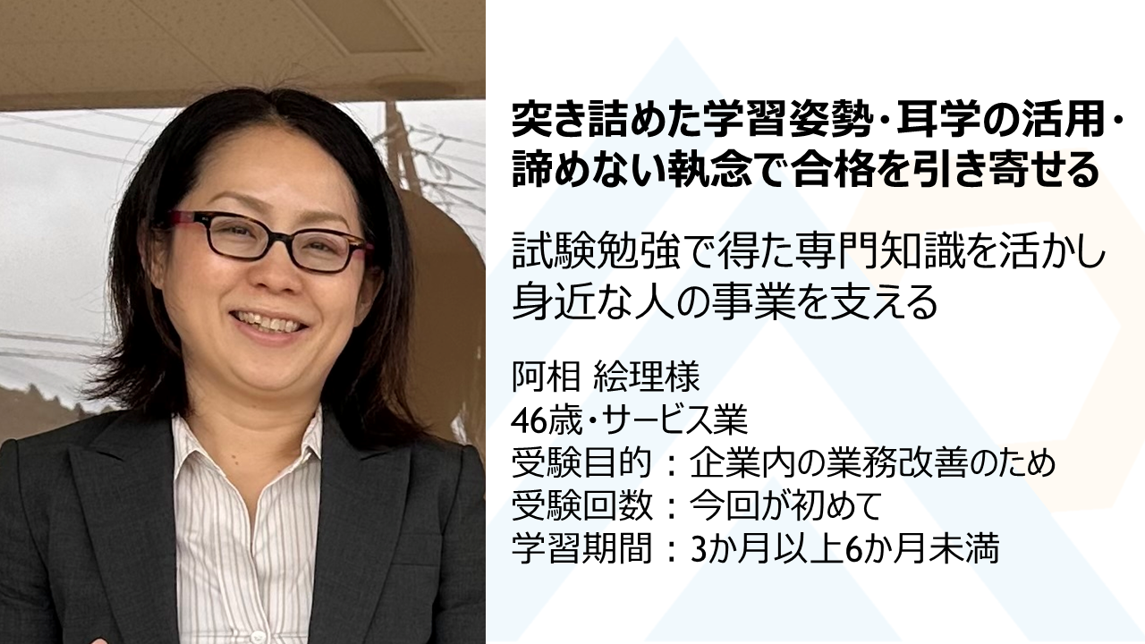 また、ほんださんの質の高いカリキュラムであれば、仕事や家事で忙しい自分の挑戦をしっかり支え、合格へ導いてくれるのではないかと感じたことも、受講を決めた大きな理由です。